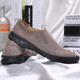 春季休闲皮鞋男鞋子男士潮流真皮英伦圆头反绒皮套脚一脚蹬休闲鞋