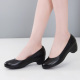 上班穿的纯黑色妇女鞋子工作鞋不累脚粗跟舒适中跟百搭单鞋真皮鞋
