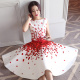 2017夏季新款女装韩版无袖背心a字蓬蓬裙中裙子 欧根纱印花连衣裙