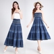 2017春夏松紧腰牛仔裙半身裙中长款高腰a字大摆裙过膝蓬蓬裙伞裙