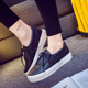 春秋平底鞋女单鞋浅口平跟女鞋套脚一脚蹬懒人鞋乐福鞋流苏黑白色
