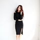 2017春季新款女装韩国性感显瘦开叉漏肩修身螺纹中长袖连衣裙长裙