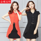 雪纺女裙夏2017新款韩版修身显瘦短袖大码短裙衬衫领假两件连衣裙