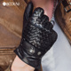 BOOUNI 真皮手套女士秋冬季加厚薄短开车羊皮分指手套裙边压褶黑