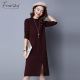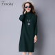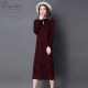 毛衣女秋冬套头过膝中长款加厚针织毛衣裙纯色长袖打底线衣超长裙
