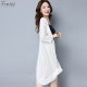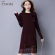 2016新款韩版秋冬蕾丝拼接针织中长款连衣裙毛衣修身气质打底裙子