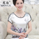 中老年女装短袖印花T恤短款中年妇女妈妈装夏装宽松雪纺衫上衣薄