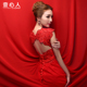 2016新款婚纱礼服一字肩双肩蕾丝红色敬酒服宴会春季长裙孕妇韩版