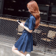 牛仔连衣裙女夏季新款韩版宽松显瘦短袖收腰修身薄款a字裙牛仔裙