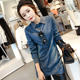 牛仔衬衫女长袖中长款韩范上衣秋装新款女装韩版修身薄款牛仔衬衣
