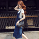 牛仔背带裙两件套夏女韩版修身不规则开叉吊带裙中裙牛仔裙连衣裙