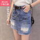 牛仔裙夏季女2017新款 韩版学生裤裙百搭修身破洞带内衬A字裙短裙