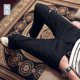 觅克加绒休闲裤男士纯黑色长裤加厚小脚发型师裤潮流修身款弹力裤