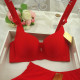 本命年大红无钢圈文胸套装秋冬新娘结婚加厚平胸聚拢调整内衣内裤