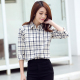 小格子衬衫女长袖纯棉修身显瘦2017春秋新款韩版小清新打底衬衣潮