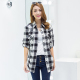 格子衬衫 女士长袖宽松休闲纯棉 2017春秋新款韩范外套磨毛女衬衣