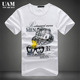 UAM春夏季大码青年圆领修身印花t恤莫代尔白色男士短袖t恤男 079