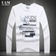 UAM加厚男装大码印花白色圆领棉男士长袖T恤 男体恤修身打底衫潮