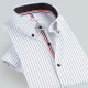 夏季蓝白条纹衬衫男短袖衬衣男士半袖纯棉修身韩版潮流商务休闲寸