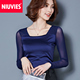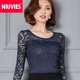 2017春秋新款女装长袖蕾丝打底衫时尚百搭网纱衣服修身上衣大码潮
