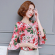短袖上衣女夏装2017新款女装韩版百搭喇叭袖荷叶边碎花雪纺衫衬衫