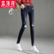 2017春季新款膝盖破洞牛仔裤女九分裤磨破弹性小脚裤子女铅笔裤潮