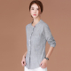 春季春款竖条纹衬衫女士长袖宽松韩版2017春装新款立领衬衣纯棉潮