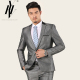 男士西服套装修身时尚休闲西装新郎结婚银灰色套装【上衣加裤子】