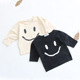 韩版笑脸长T童装韩版七分袖儿童春装T恤男女童笑脸滑肩开叉打底衫