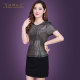 炫狮从芭2017夏季潮新款女装圆领短袖条纹一步裙拼接假两件连衣裙