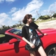 姐妹闺蜜装宽松中长款开叉卡通大半袖粉红顽皮豹t恤女夏体恤上衣