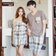 2套价韩版夏新款情侣睡衣女梭织棉睡裙短袖男士夏棉家居服套装