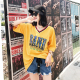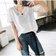 彼岸寻短袖上衣女夏2017新款字母宽松T恤韩版V领百搭长款弹力t