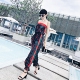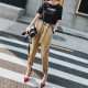 彼岸寻欧洲站春装女2017新款弹力黑色牛仔裤女侧边条纹微喇九分裤
