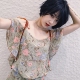 彼岸寻夏装2017新款女印花家居服V领吊带短裤套装真丝睡衣两件套