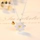 七禧云纯银莲花银项链清新 女简约锁骨链细短款颈带链子学生吊坠