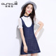欧昵雪2017春装新款女装绣花连衣裙复古撞色拼接假两件A字短裙潮
