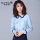 欧昵雪2017春装新款OL气质简约女装衬衣时尚刺绣翻领长袖衬衫秋装