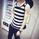 男士背心男韩版修身型横条纹紧身无袖小汗背心夏季休闲运动潮流
