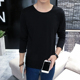 咏眠男士韩版新款长袖T恤 黑色圆领打底衫 修身紧身上衣秋冬男装