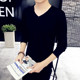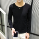 咏眠 男士纯色V领长袖T恤 修身韩版上衣 黑色打底衫秋冬新款男装