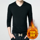 男士V领休闲修身打底衫纯色长袖T恤衫秋冬装新款韩版加厚加绒男装