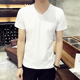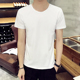 男士V领短袖T恤黑白纯色体恤上衣修紧身打底衫韩版半袖夏装潮男装