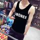 背心男士修身黑白字母印花夏季日系健身运动休闲无袖小汗背心