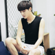 韩版男士修身汗背心紧身宽肩背心纯色夏季无袖体恤上衣服潮男装