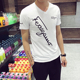男士短袖T恤男装纯棉V领韩版修身纯色打底衫夏季半袖体恤潮流印花