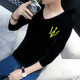 咏眠男士新款修身印花V领长袖T恤 韩版时尚打底衫秋冬衣服男装