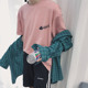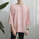 2017港风七分袖字母刺绣粉色t恤男士短袖圆领7分袖小清新大码宽松