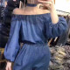一字肩百搭牛仔连体裤 2017韩版宽松纯色收脚高腰显瘦学生休闲裤