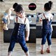 2017春秋款 韩版裹胸高腰男女童背带裤 连体裤宝宝 牛仔长裤子